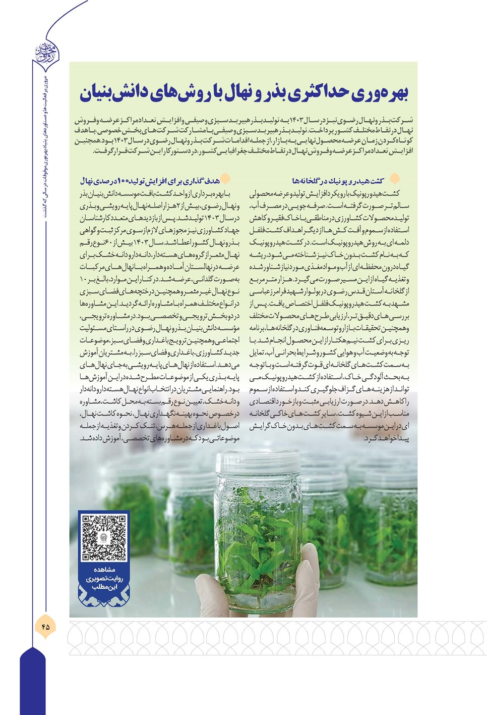 صفحه 45 : فعالیت ها و دستاوردهای بنیاد بهره وری آستان قدس رضوی در سال 1403