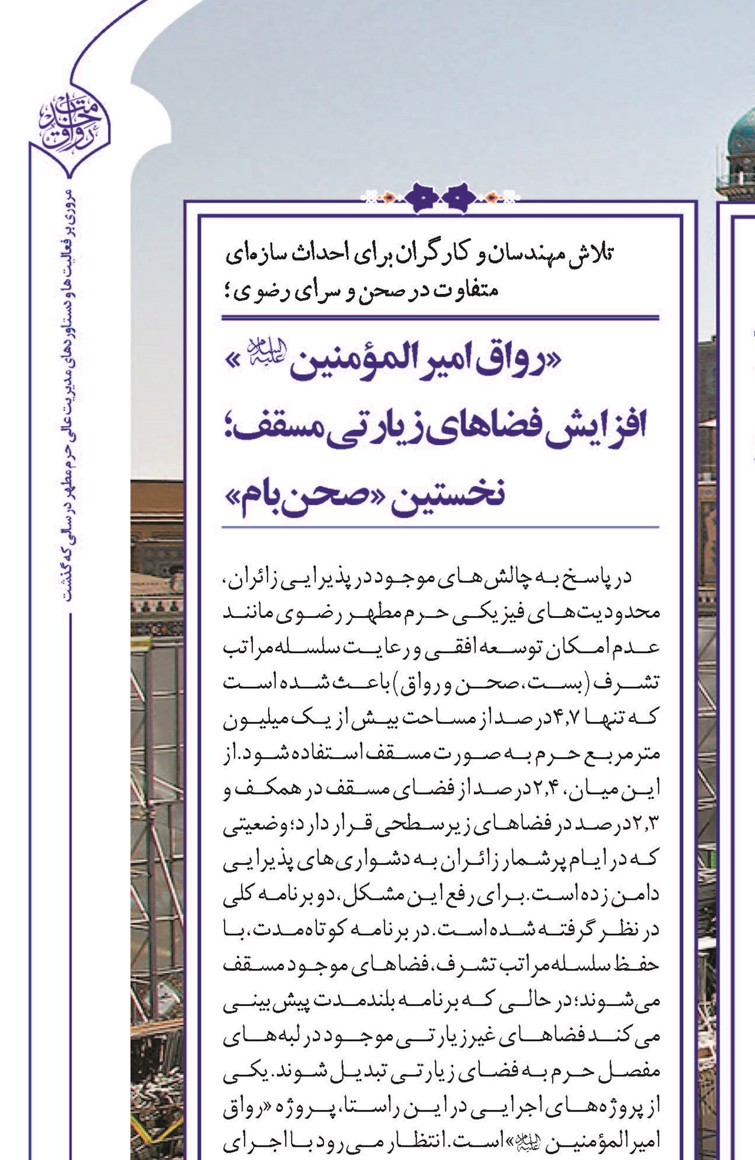 «رواق امیرالمؤمنین(ع)» افزایش فضاهای زیارتی مسقف؛ نخستین «صحنبام»